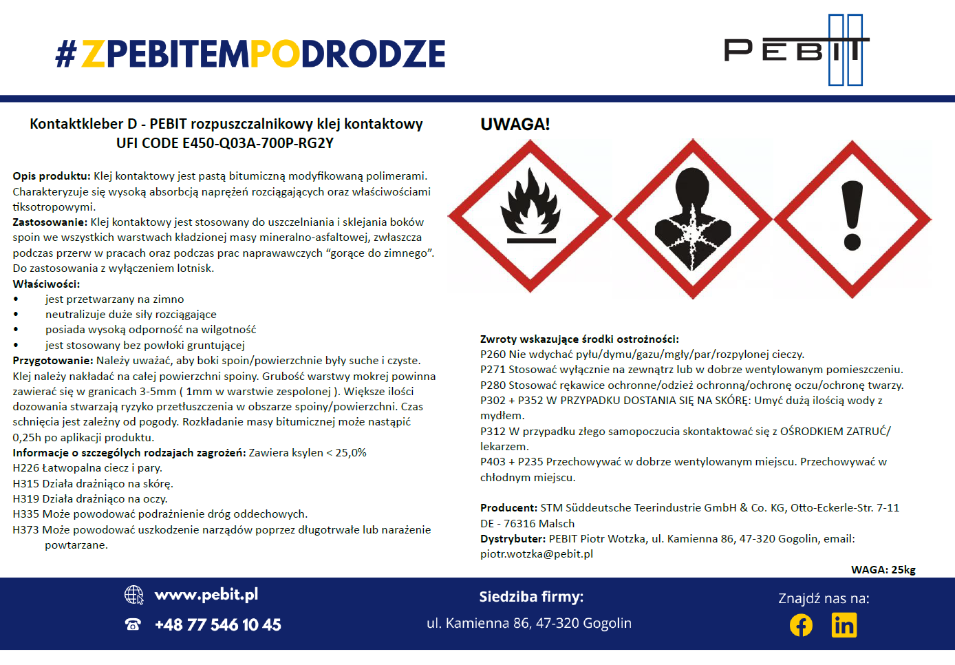 Tiksotropowy klej kontaktowy jest stosowany do uszczelniania i sklejania boków spoin technologicznych we wszystkich warstwach konstrukcyjnych drogi o nawierzchni asfaltowej.